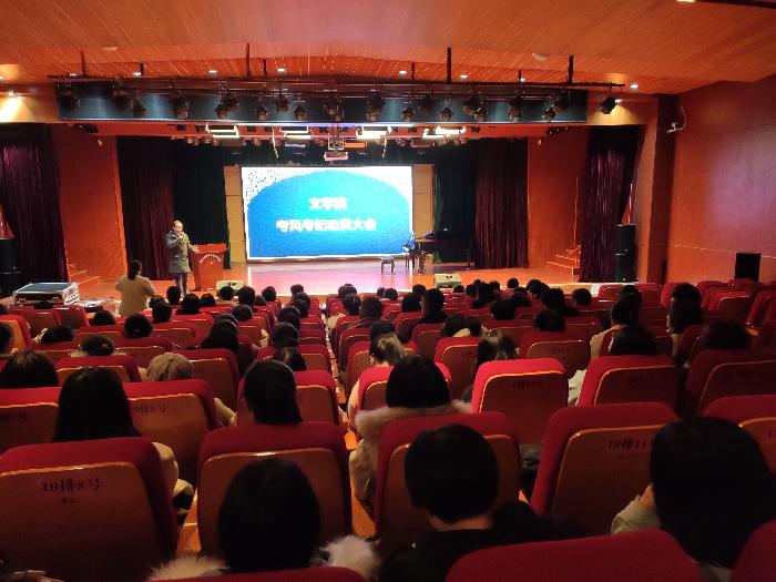 为进一步严肃考风考纪,加强学风建设,营造文明考试、诚信作答的考试环境,12月10日下午,文学院召开了“文学院2019-2020学年第一学期考风考纪动员大会”。文学院200余名学生参加。文学院党总支副书记李莎莎主持会议...