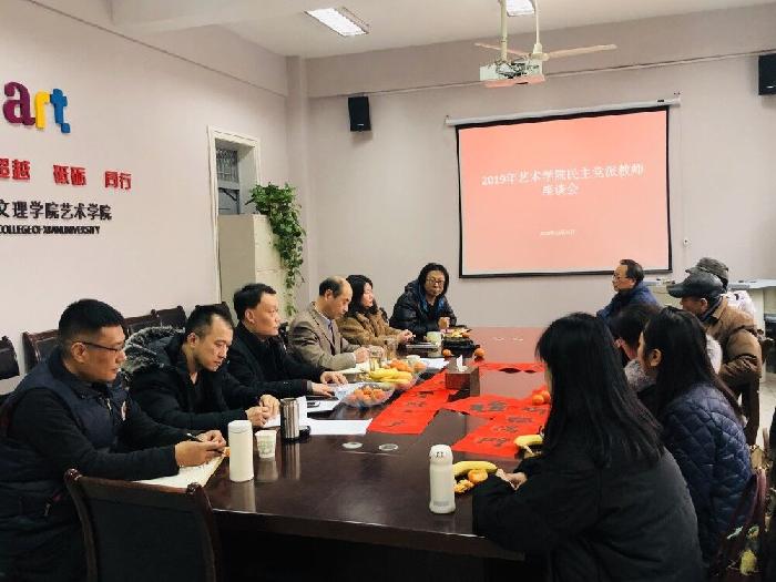 2019年12月31日,艺术学院党总支举办了民主党派教师座谈会。民进成员杨艺媛、刘峻、李海明,民盟成员赵春茹,农工党成员武晓丽,九三成员杨帆等老师与艺术学院班子、党总支成员一起参会。会议由王一副书记主持。 党总...