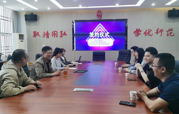 4月11日下午,文学院于明德楼会议室举办签约仪式。陕西介维文化有限公司负责人王晰、何延、郭潇,陕西天艺美嘉文化传媒有限公司代表谭伟,文学院院长郝延军、副院长马娜、戏剧影视文学系主任马珂、戏剧美育中心副主任...