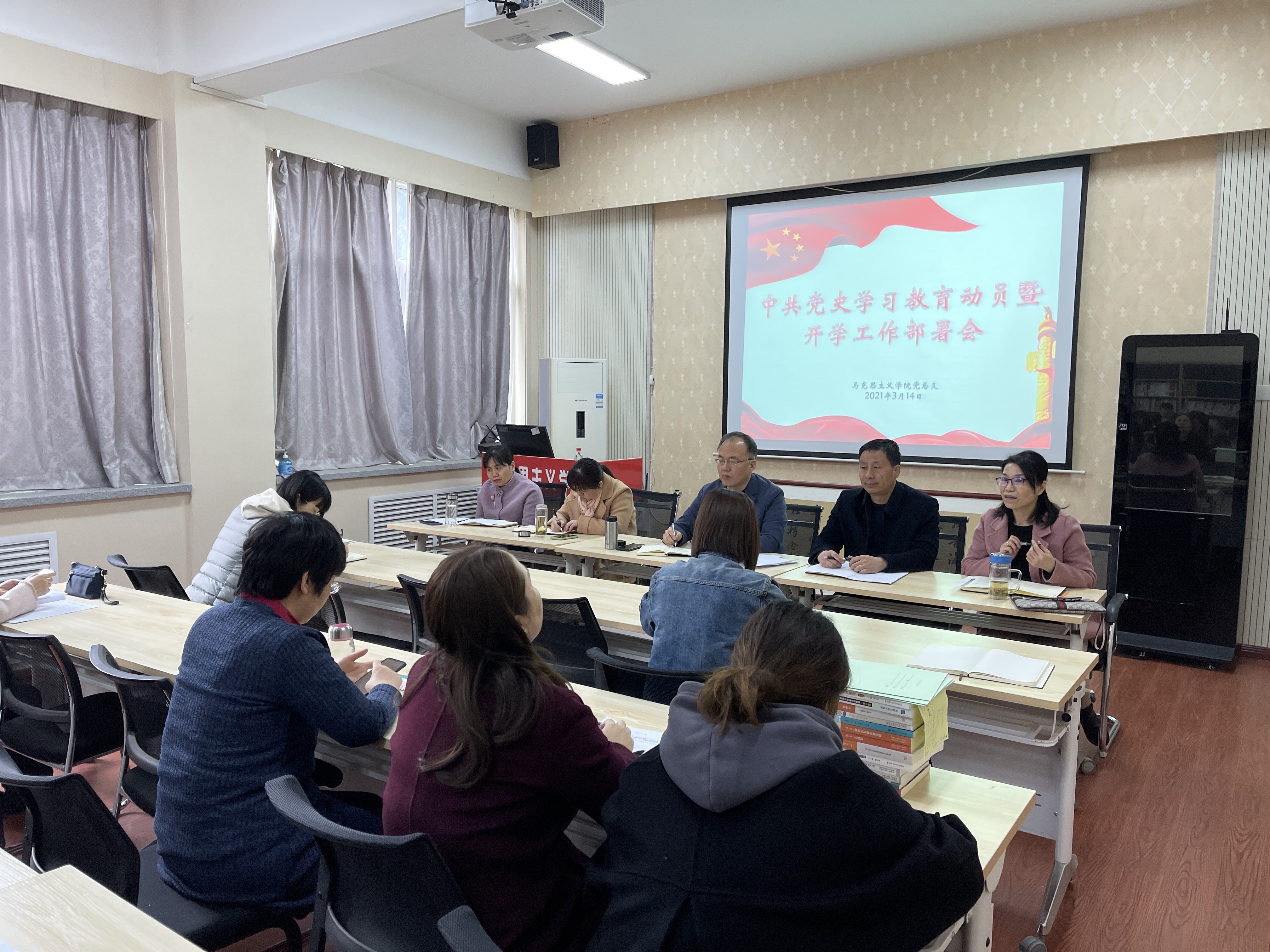 3月14日上午,马克思主义学院党总支在弘文楼H0258召开了党史学习教育动员大会。集中学习了习近平总书记在党史学习教育动员大会上的重要讲话精神,动员全体党员教师扎扎实实推动学党史、悟思想、办实事、开新局。会议...