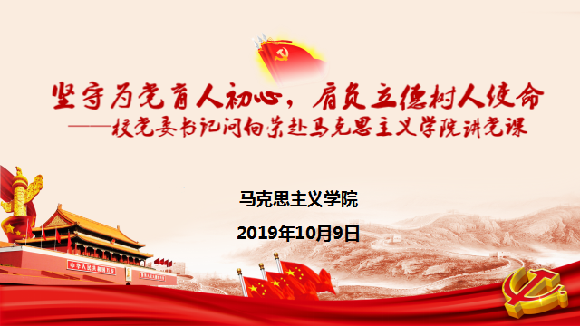 10月9日,校党委书记问向荣到马克思主义学院,为学院班子成员及教师代表讲授党课,题目为“坚守为党育人初心,肩负立德树人使命”。 问向荣从坚持党的领导,坚持社会主义办学方向,坚持办人民满意的大学,建设社会主...