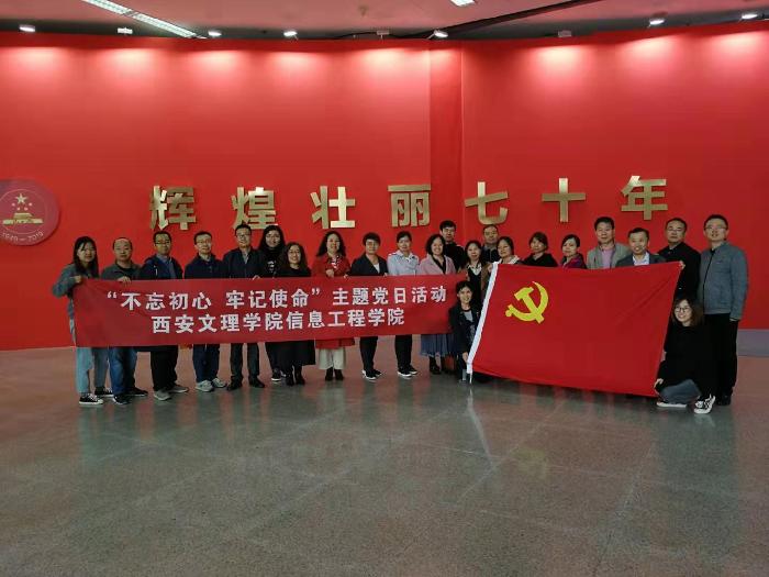 10月15日,信息工程学院党总支结合“不忘初心、牢记使命”主题教育,组织全体教工党员参观了由省委宣传部、省委党史研究室、省发展改革委主办的“陕西省庆祝新中国成立70周年成就展”。“辉煌壮丽七十年 追赶超越再出...